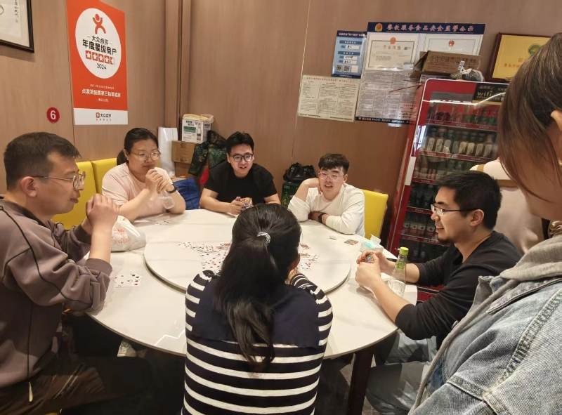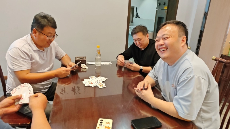 Efter et kort hvil ved middagstid, kl. 12.30, flyttede vi til hotellet og startede en interessant Guandan-konkurrence. Som et teambuilding-projekt, der er elsket af alle, tester Guandan ikke kun personlig logisk tænkning, men lægger også mere vægt på det stiltiende samarbejde mellem partnere - "Et godt kort konkurrerer ikke for øjeblikket, og partnerens stiltiende forståelse er vigtigere end personlig heltemod", hvilket netop er betydningen af Guandan teambuilding.